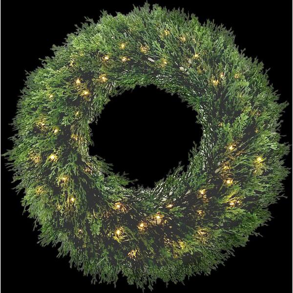 24 in. Dia. Wreath Cedar 70 LED Warm White Lights Battery Operation