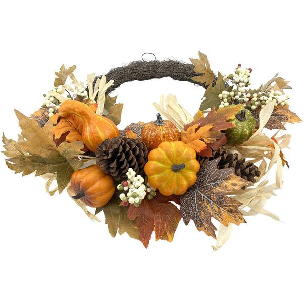 24 in. Fall Maple Leaf and Pumpkin Wreath