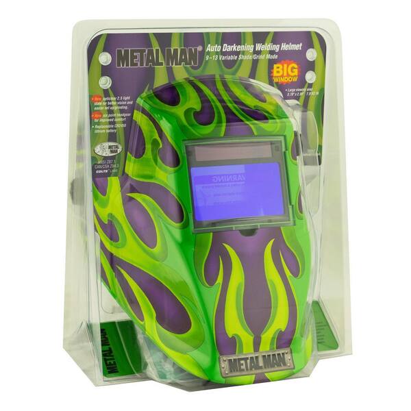 Purple Green Flame 9 to 13 Shade Auto Darkening Welding Helmet with 3.78 in. x 2.05 in. Viewing Area