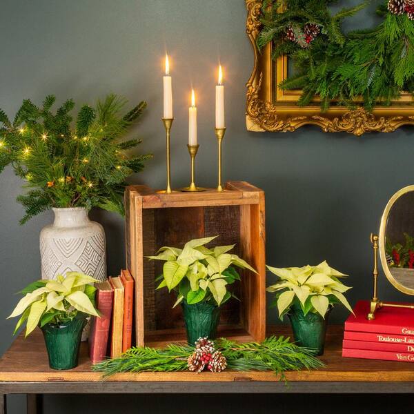 1.5 qt. 5 in. Live Christmas Poinsettia White with Green Foil Holiday Plant (3-Pack)