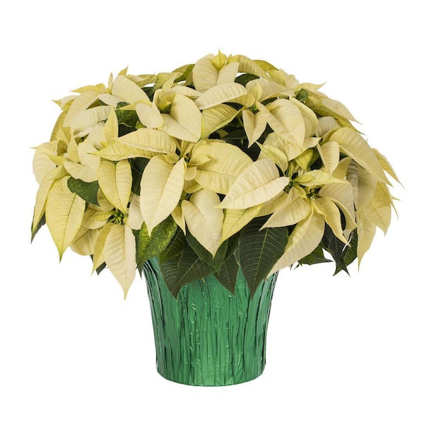 3.5 qt. 8 in. Live Christmas Poinsettia White with Green Foil Holiday Plant (1-Pack)