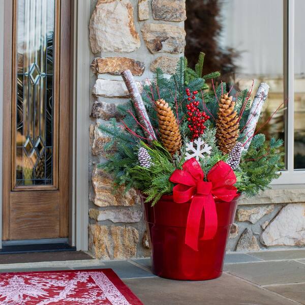 9.7 Gal. Fresh Cut Holiday Greens in Red Planter