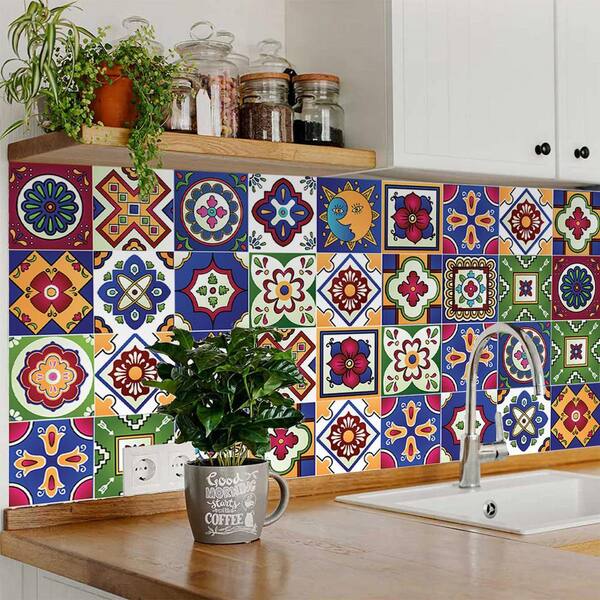 Blue, Orange and Sienna M 8 in. x 8 in. Vinyl Peel and Stick Tile (24 Tiles, 10.67 sq. ft./Pack)