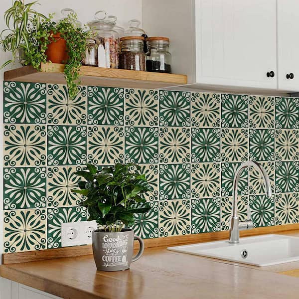 Dark Green and Antique White R1012 5 in. x 5 in. Vinyl Peel and Stick Tile (4.17 sq.ft., 24-Tiles/pack)