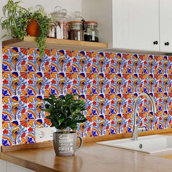 Orange/Blue S4 4 in. x 4 in. Vinyl Peel and Stick Tile (24 Tiles, 2.67 sq. ft. /Pack)