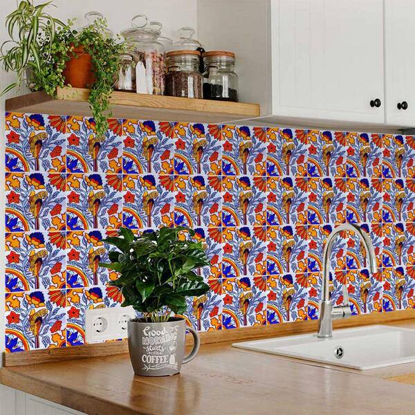 Orange/Blue S4 7 in. x 7 in. Vinyl Peel and Stick Tile (24 Tiles, 8.17 sq. ft. /Pack)