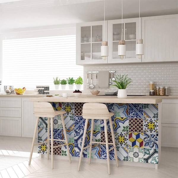 Yellow, Blue, White V3 12 in. x 12 in. Vinyl Peel and Stick Tile (24 Tiles, 24 sq.ft. /pack)