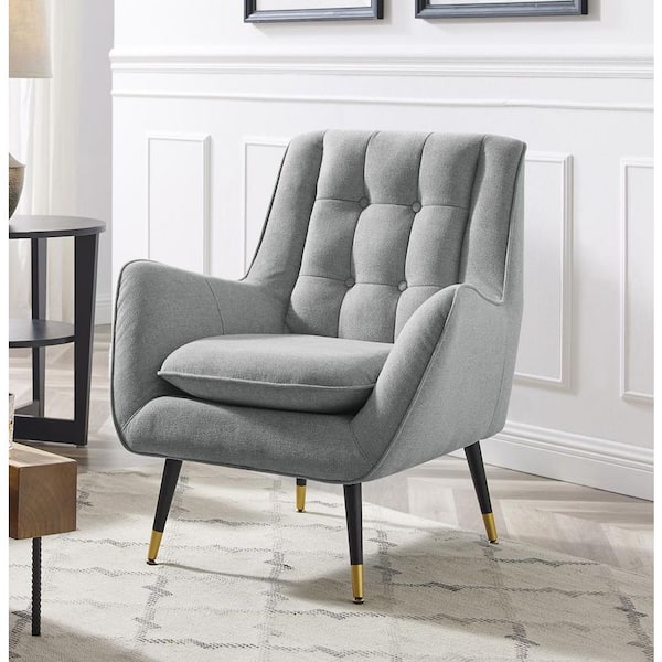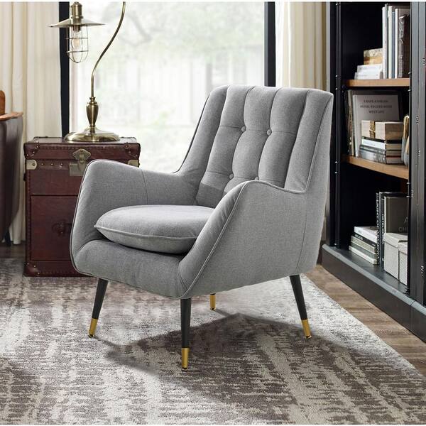 MIA Light Gray Fabric Mid-Century Accent Arm Chair with Cushion and Legs