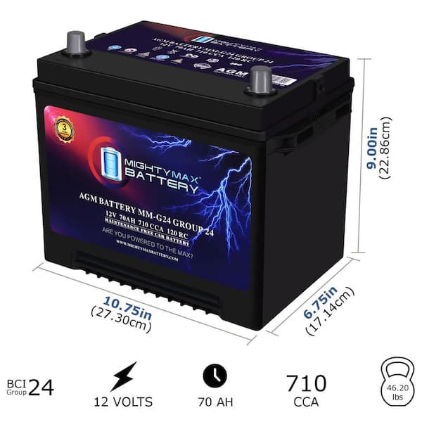 MM-G24 Start and Stop Car BCI Group Size 24 12-Volt 70Ah, 120RC, 710 CCA Rechargeable AGM Car battery