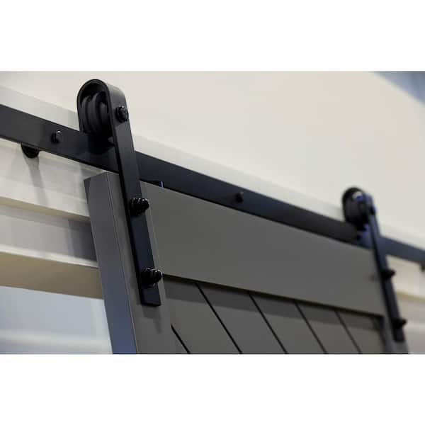 42 in. x 84 in. Diagonal Vinyl Barn Door Kit City Grey with Track and Hardware