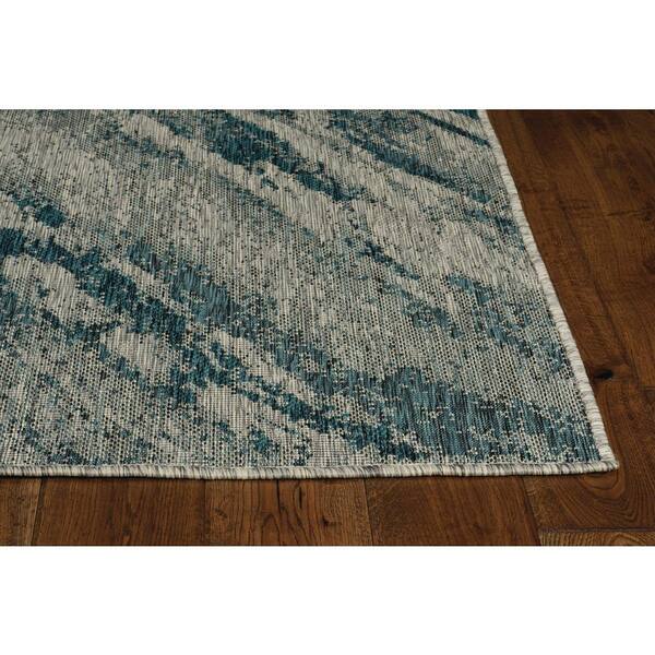 Isla Gray/Teal 8 ft. Round Transitional Watercolor Indoor/Outdoor Area Rug