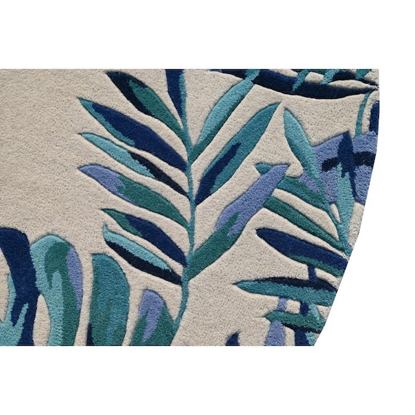 Kai Ivory/Blue 6 ft. Round Tropical and Transitional Hand-Tufted Wool Area Rug