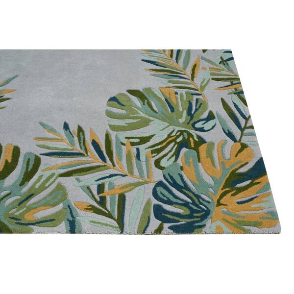 Kai Light Blue 5 ft. x 8 ft. Tropical and Transitional Hand-Tufted Wool Area Rug