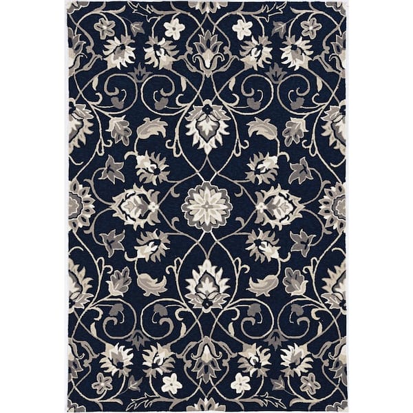 Mira Navy 5 ft. x 8 ft. Medallion Transitional Hand-Made Area Rug