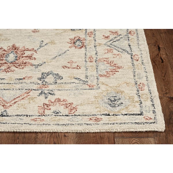 Opal Ivory 5 ft. x 7 ft. Floral Modern Hand-Tufted Wool Area Rug