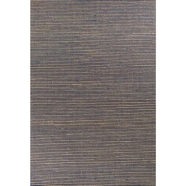 West Blue 5 ft. x 7 ft. Solid Bohemian Hand-Woven Wool & Jute Area Rug