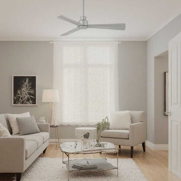 Simple 52 in. Indoor/Outdoor Silver Ceiling Fan with Remote Control