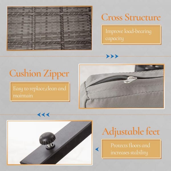 3-Piece Grey Wicker Patio Conversation Set with Table and Grey Cushions