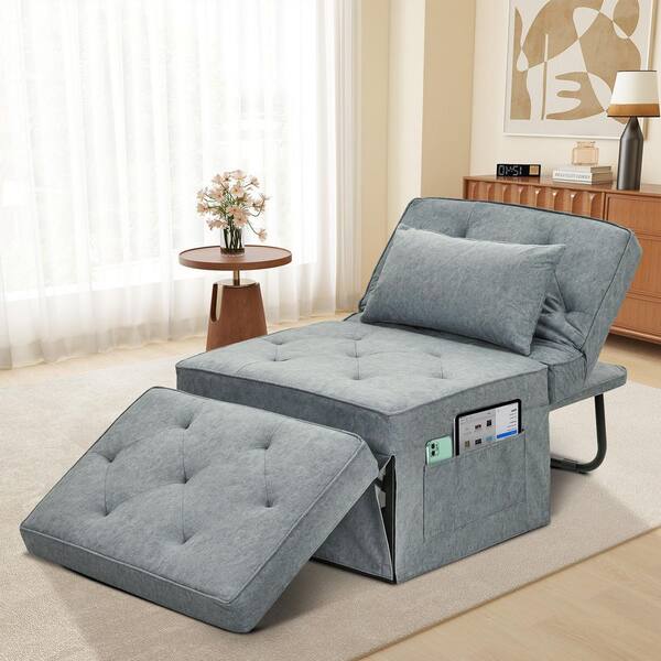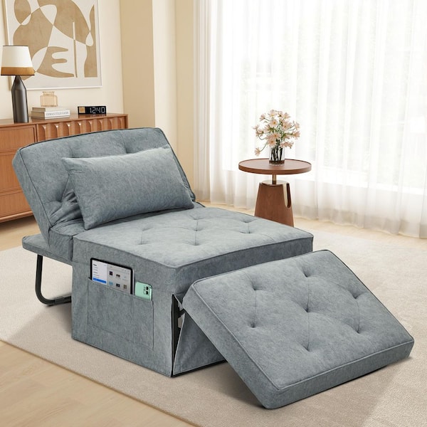 Folding Black 1 Piece Metal Outdoor/Indoor Day Bed with Blue Cushions Medium 28 in. Width