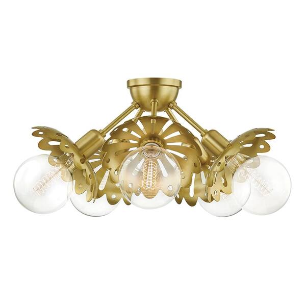 Alyssa 10.5 in. 5-Light Aged Brass Semi-Flush Mount