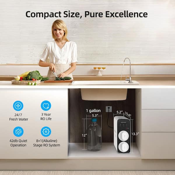 Megaflo Mini 8-Stage Tankless Reverse Osmosis System, 800 GPD Under Sink RO Water Filter with Faucet, NSF Certified