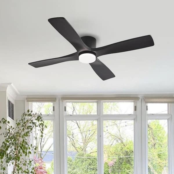 48 in. (4 ft.) 4 Solid Wood Blades Indoor Flush Mount Ceiling Fan with Integrated LED, Black