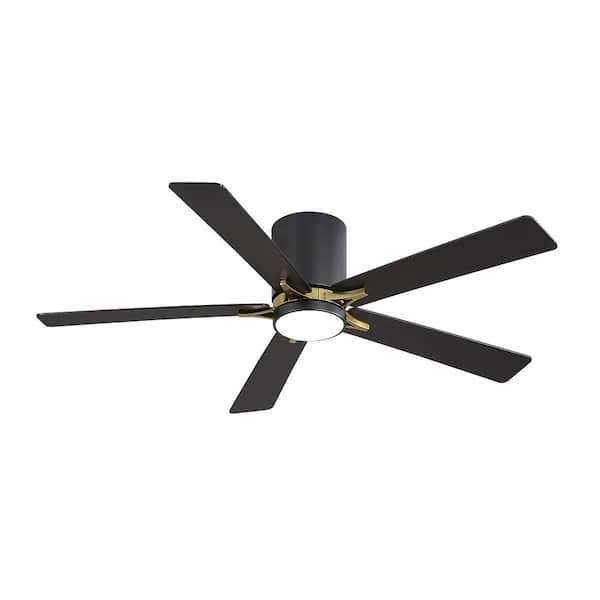 48 in. (4 ft. ) DC Motor Indoor Flush Mount Ceiling Fan with Integrated LED, Black and Gold