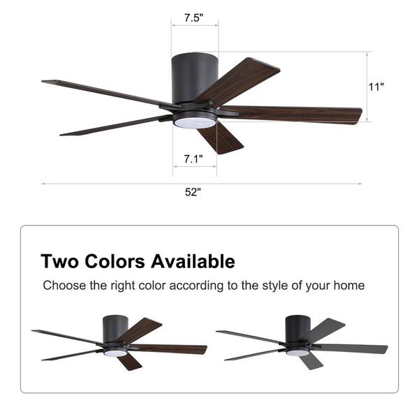52 in. (4.3 ft.) DC Motor Indoor Flush Mount Ceiling Fan with Integrated LED, 5 Reversible Blades, Black