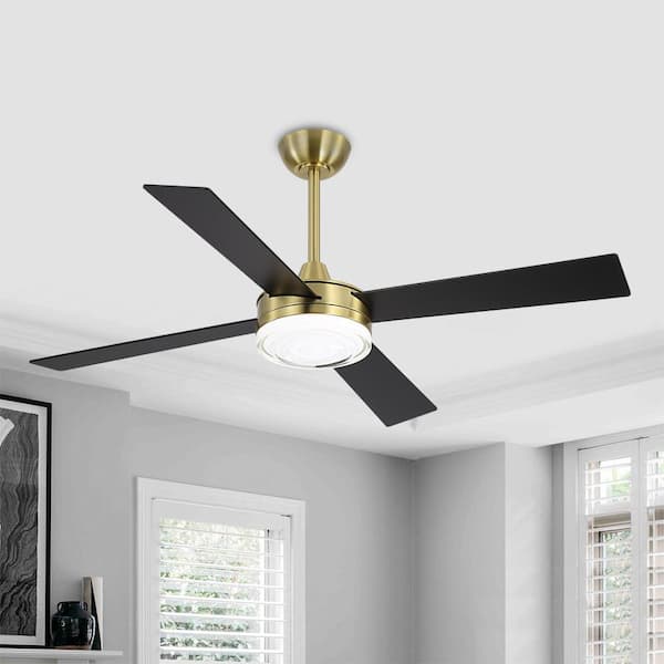 52 in. (4.3 ft. ) Indoor Ceiling Fan with Integrated LED, Glass Shade, Gold
