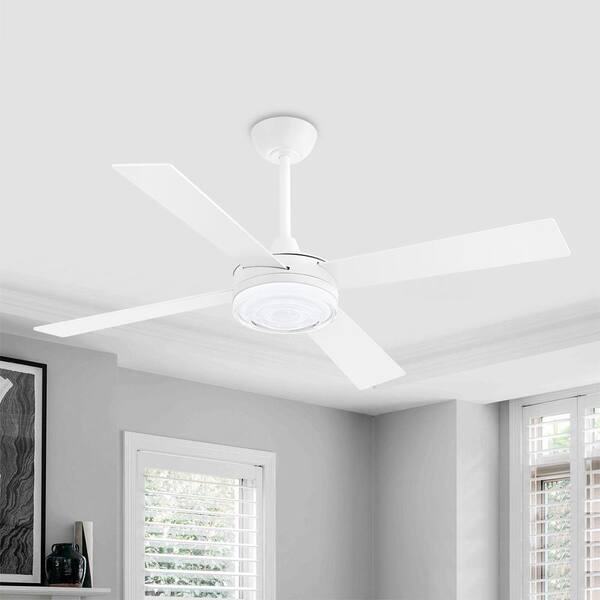 52 in. (4.3 ft. ) Indoor Ceiling Fan with Integrated LED, Glass Shade, White