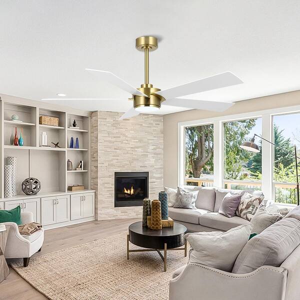 54 in. (4.5 ft.) 5 Blades Indoor Ceiling Fan with Integrated LED and Remote, Gold