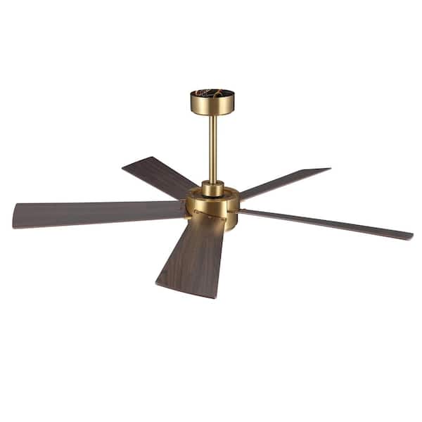 64 in. (5.3 ft.) 5-Blades Indoor Ceiling Fan with Integrated LED and Remote, Gold