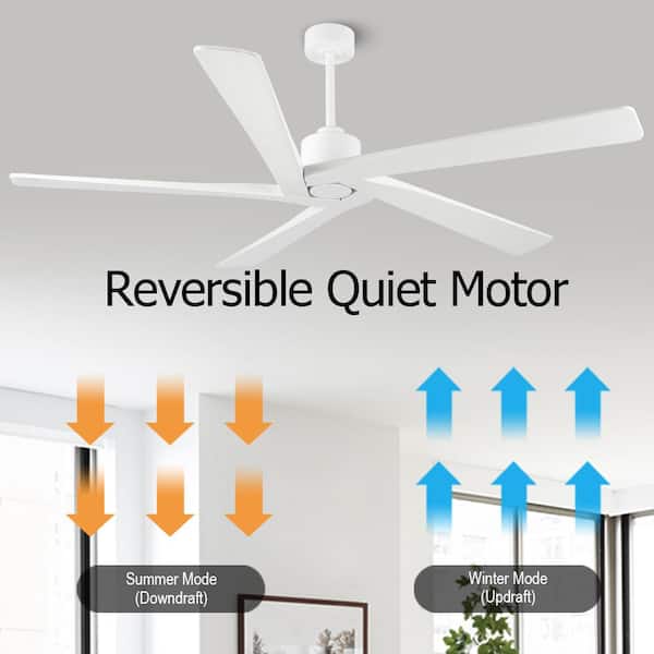 64 in. DC Indoor White Ceiling Fan without Lights, 5 Reversible Carved Solid Wood Blades Remote Control