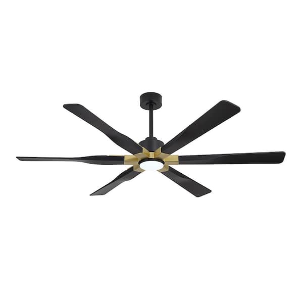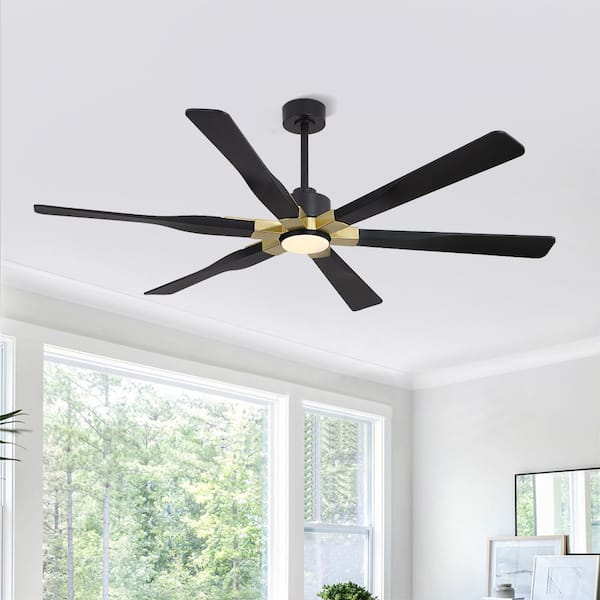 68 in. (5.7 ft.) 6 Blades Indoor Ceiling Fan with Integrated LED and Remote, Black and Gold