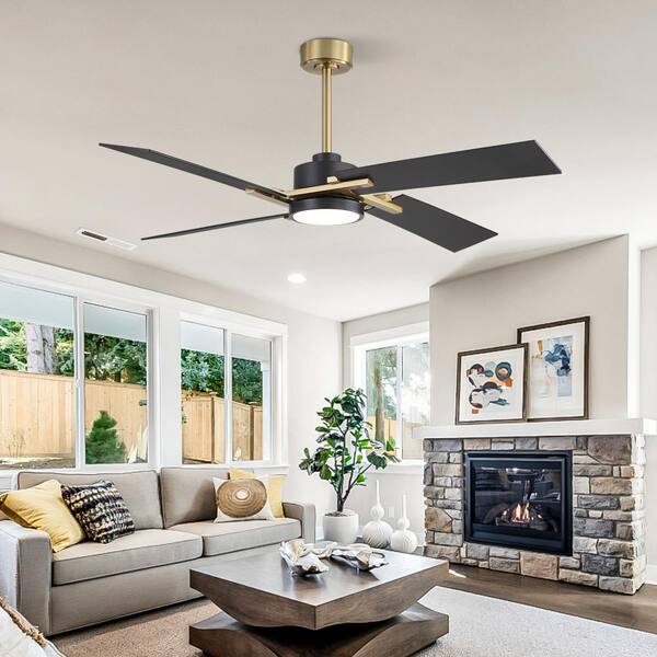 72 in. (6 ft.) 4 Blades Indoor Ceiling Fan with Integrated LED and Remote, Gold