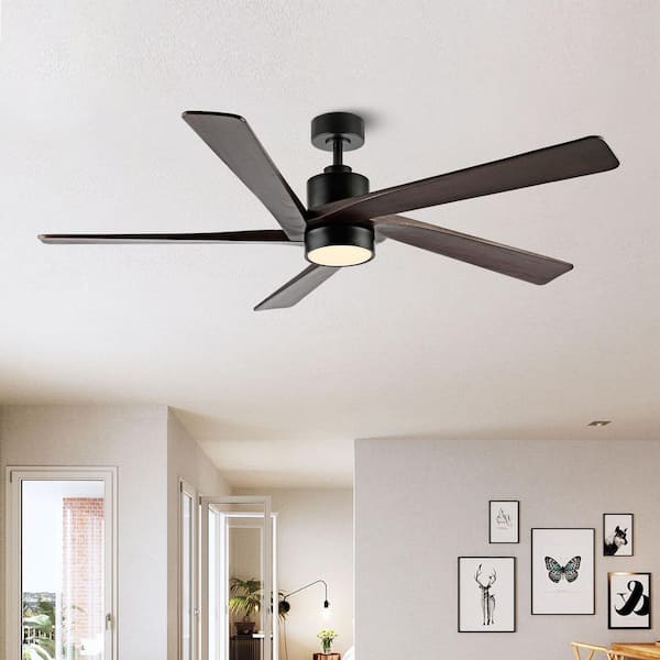 72 inch 5 Blades LED Indoor Black and Walnut Ceiling Fan with Remote