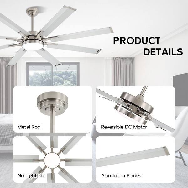 96 in. (8 ft.) Indoor Aluminum Blades Ceiling Fan with Integrated LED, Nickel