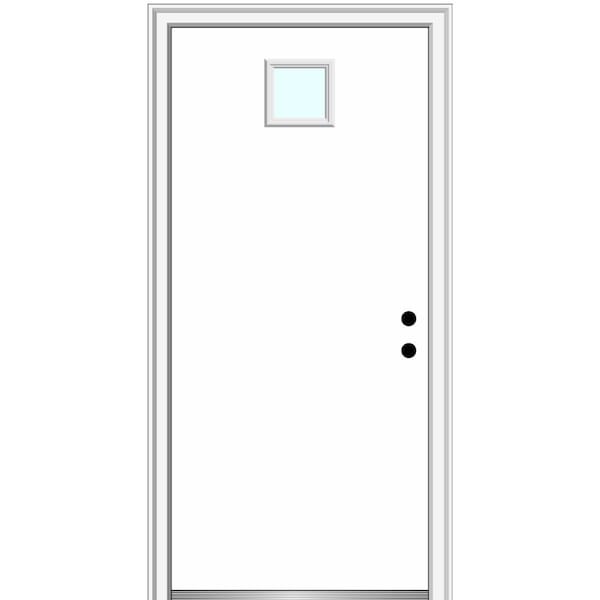 30 in. x 80 in. Classic Left-Hand Inswing 1-Lite Clear Primed Fiberglass Smooth Prehung Front Door on 6-9/16 in. Frame