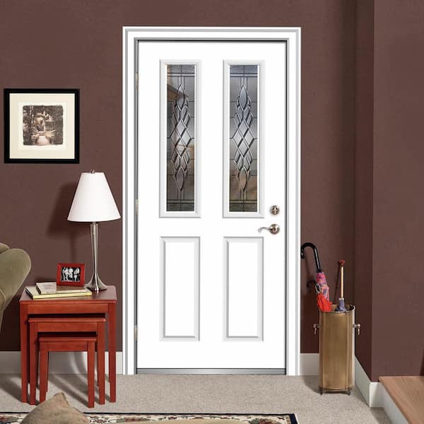 30 in. x 80 in. Grace Right-Hand Inswing 2-Lite Decorative 2-Panel Primed Steel Prehung Front Door, 4-9/16 in. Frame