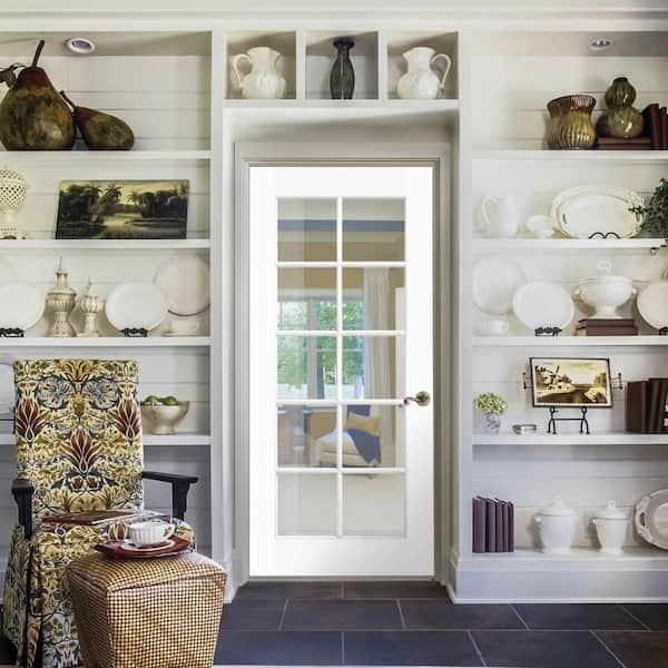 30 in. x 80 in. Left Handed Primed Composite Clear Glass 10 Lite True Divided Single Prehung Interior Door