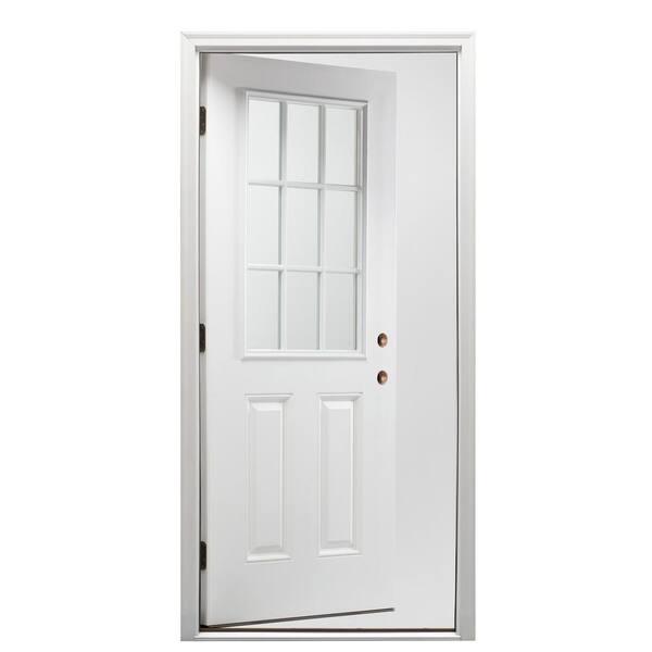 32 in. x 80 in. Classic Left-Hand Inswing 9-Lite Clear Low-E Primed Steel Prehung Front Door on 6-9/16 in. Frame