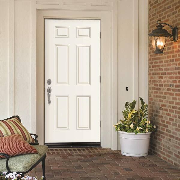 32 in. x 80 in. Left Hand/Outswing 6-Panel Classic Primed Fiberglass Smooth Prehung Front Door on 4-9/16 in. Frame