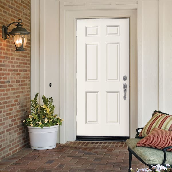 32 in. x 80 in. Right-Hand/Outswing 6-Panel Classic Primed Fiberglass Smooth Prehung Front Door on 4-9/16 in. Frame