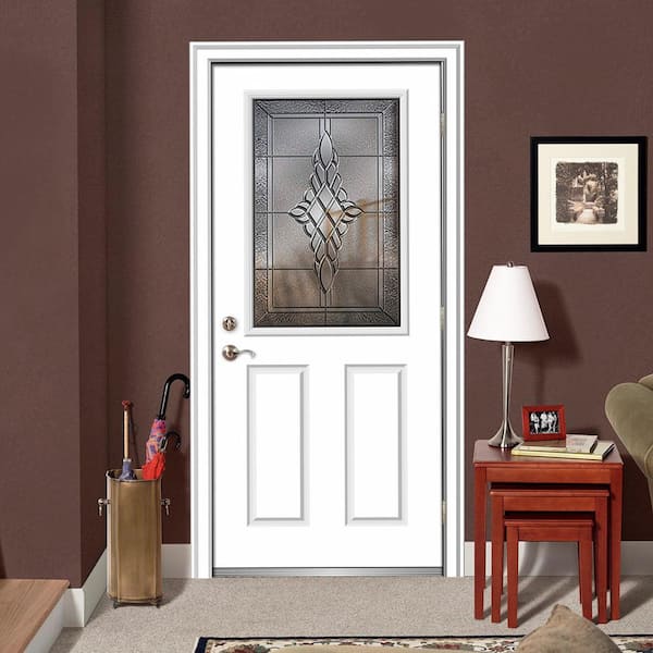 34 in. x 80 in. Grace Left-Hand Inswing 1/2-Lite Decorative Primed Fiberglass Prehung Front Door, 4-9/16 in. Frame