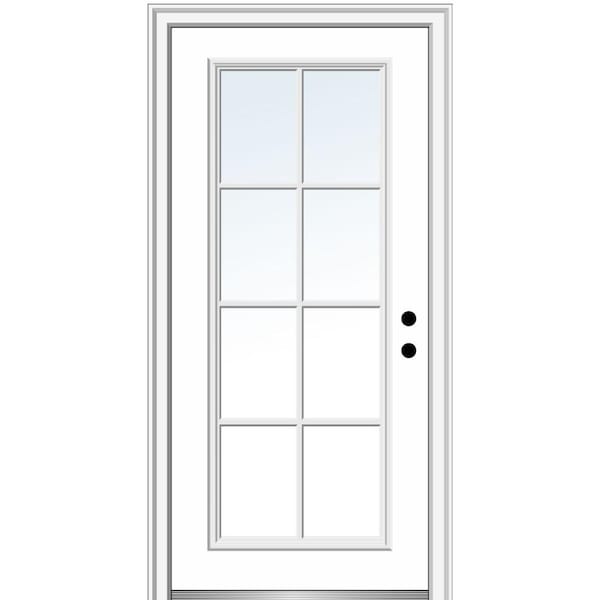 34 in. x 80 in. Simulated Divided Lites Left-Hand Full Lite Clear Classic Primed Fiberglass Smooth Prehung Front Door