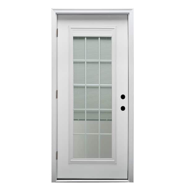 36 in. x 80 in. Internal Blinds and Grilles Right-Hand Outswing Full Lite Clear Primed Steel Prehung Front Door