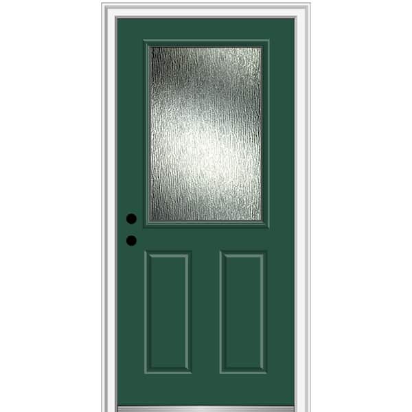 36 in. x 80 in. Right-Hand Inswing Rain Glass Hunter Green Fiberglass Prehung Front Door on 4-9/16 in. Frame