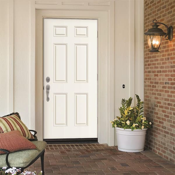 36 in. x 80 in. Severe Weather Left-Hand Outswing 6-Panel Primed Fiberglass Smooth Prehung Front Door