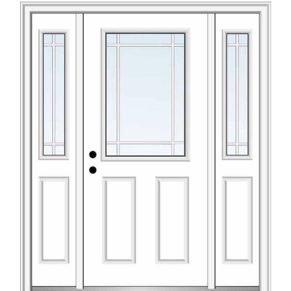 64.5 in. x 81.75 in. Internal Grilles Right-Hand 1/2-Lite Clear Primed Fiberglass Smooth Prehung Front Door w/ Sidelites