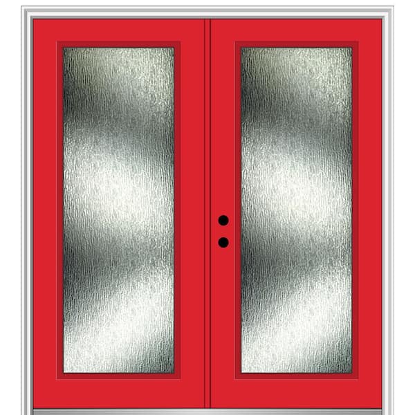68 in. x 80 in. Right-Hand Inswing Rain Glass Red Saffron Fiberglass Prehung Front Door on 4-9/16 in. Frame